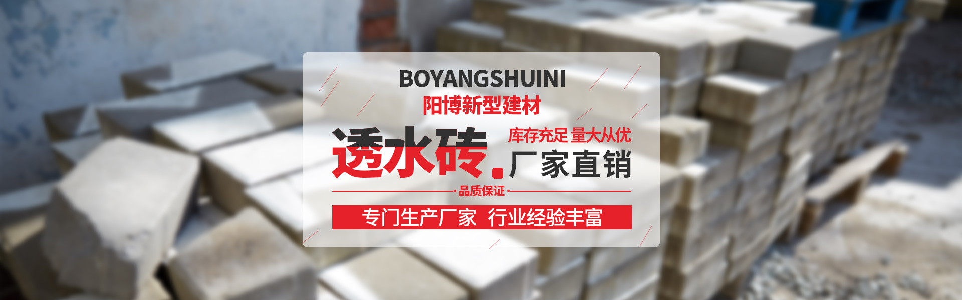 昆明陽博新型建材有限公司(原星貿(mào)水泥制品廠)始建于2007年,現(xiàn)有西三環(huán)總廠、桃園制管分廠、沙靠構(gòu)件分廠,生產(chǎn)和銷售鋼筋混凝土排水管、人行道磚、透水磚、落水篦子、蓋板、路沿石等各類混凝土預(yù)制構(gòu)件。經(jīng)過十余年發(fā)展,公司取得了“國內(nèi)工業(yè)產(chǎn)品生產(chǎn)許可證”、“混凝土預(yù)制構(gòu)件三級資質(zhì)”、“試驗(yàn)室證書”等資質(zhì),并先后獲得了云南省混凝土協(xié)會和云南省水泥制品協(xié)會授予的“企業(yè)發(fā)展獎(jiǎng)”、“突出貢獻(xiàn)獎(jiǎng)”、“副主任委人員單位”等榮譽(yù)。我公司從成立至今,產(chǎn)品和服務(wù)深受用戶信賴,遠(yuǎn)銷省內(nèi)外。先后承接了中鐵十五局集團(tuán)第四工程有限公司昆明市官渡13號路排水工程項(xiàng)目、中鐵上海工程局市政工程有限公司昆明主城南片排水管網(wǎng)完善工程項(xiàng)目、中鐵建設(shè)集團(tuán)有限公司大漁路項(xiàng)目、中鐵八局集團(tuán)昆明鐵路建設(shè)有限公司昆明排水管網(wǎng)完善工程項(xiàng)目、山東黃河工程集團(tuán)有限公司昆明北沙地項(xiàng)目等的排水管道...