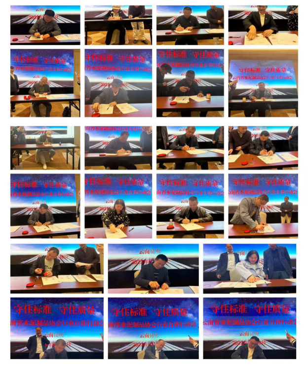 會上代表們充分討論,相互交換意見。會長、副會長、云南各地龍頭企業負責人率先帶頭表態,嚴格按照標準生產管道,與會企業代表經過充分溝通交流之后,對“既要保訂單、更要保質量”達成高度一致,形成《云南省水泥制品協會行業自律書》,后在與會代表的共同鑒證下,各企業法人代表,莊重地《自律書》簽字蓋章。